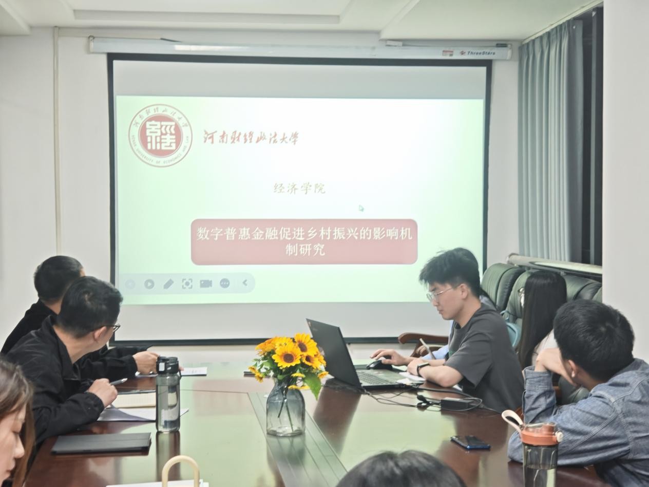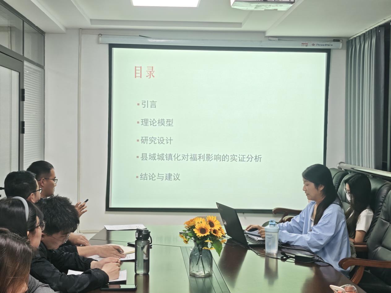4月14日,第九期经研工作坊在建树楼425举行。本次工作坊聚焦“县域城镇化”和“数字普惠金融”两个研究主题。2024级研究生张佳佳、郭昀分别宣讲题为《中国县域城镇化与居民福利:理论与经验研究》和《数字普惠金融促进乡村振兴的影响机制研究》的工作论文和文献。副院长王灏主持工作坊,学院冯树辉老师点评。师生们就如何确定选题、论文写作规范、批判式阅读、科研引领方式等进行了讨论和分享。